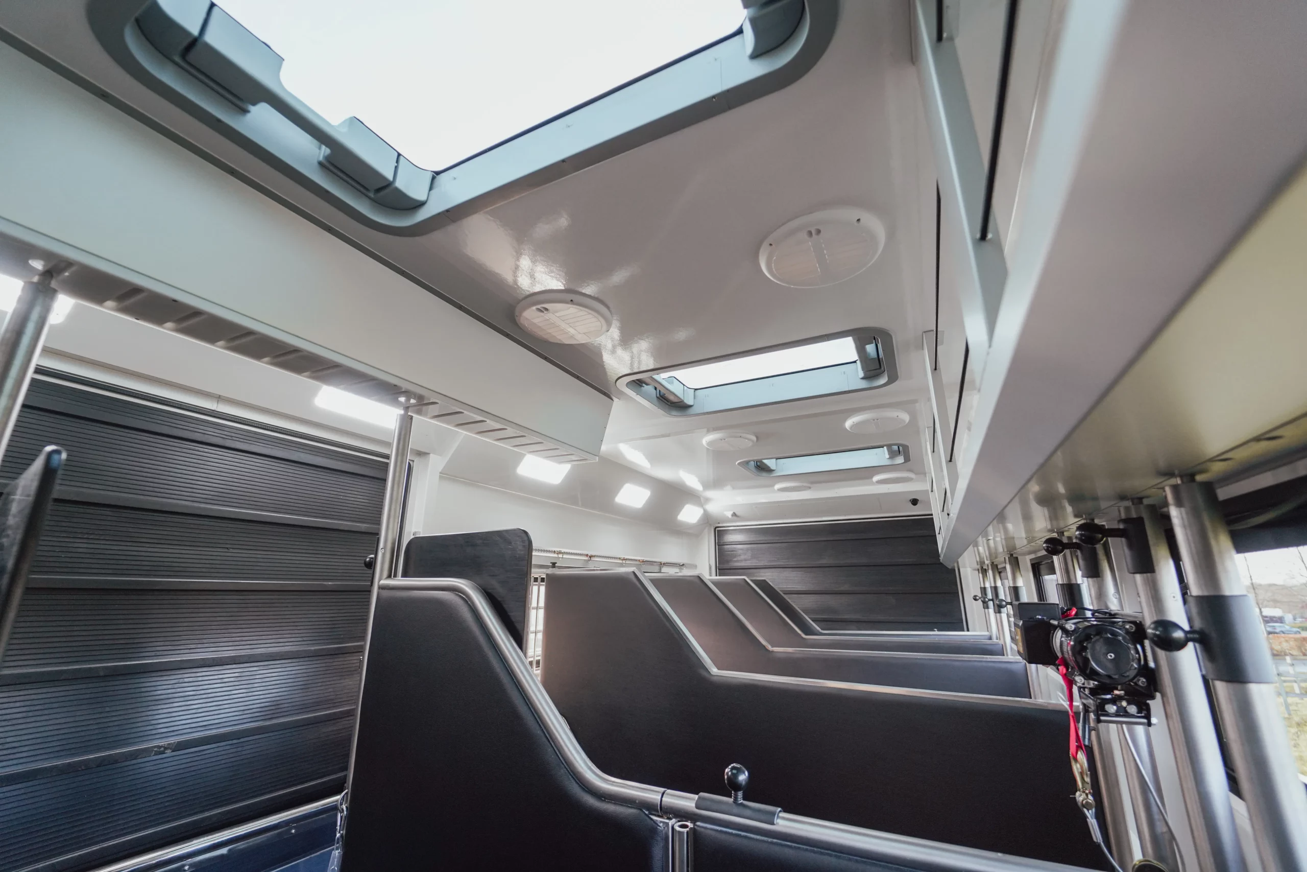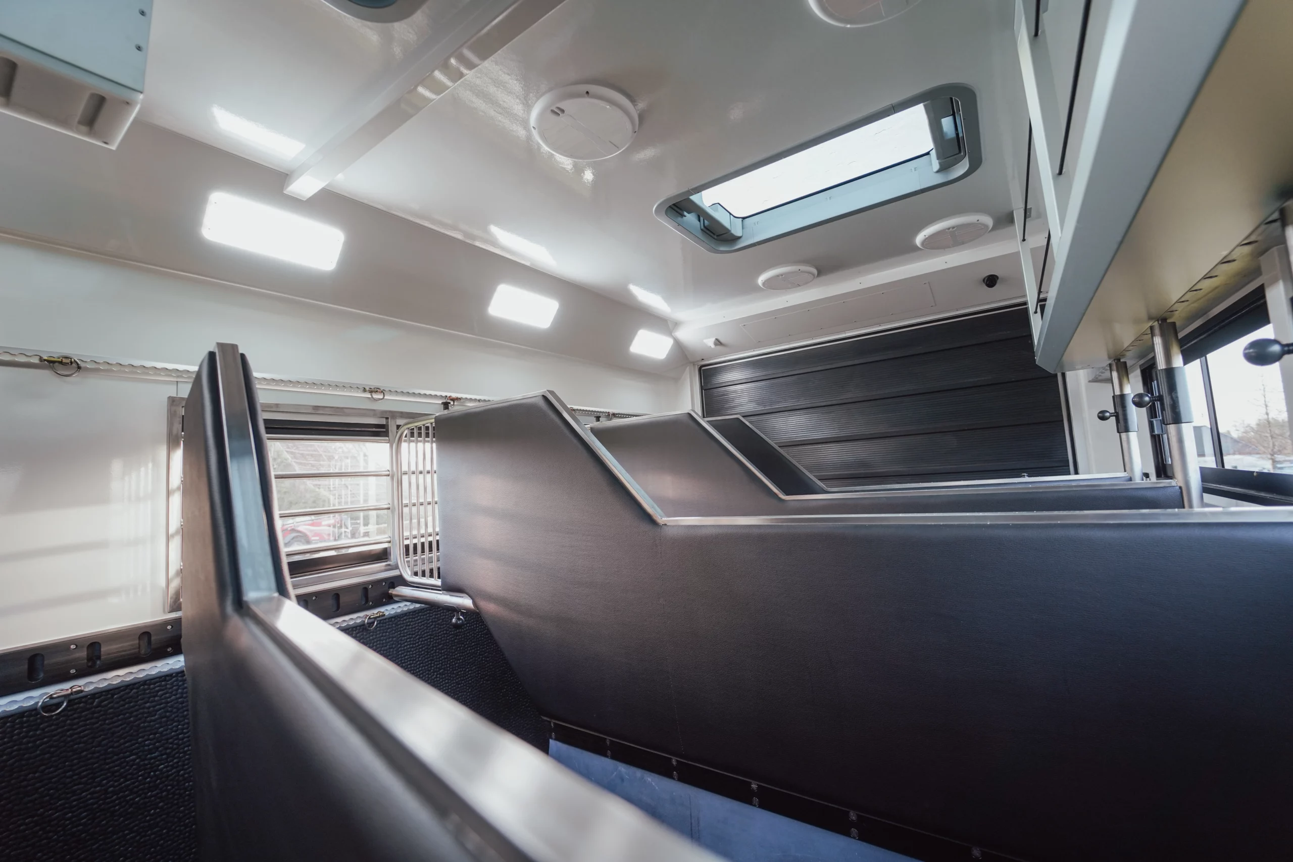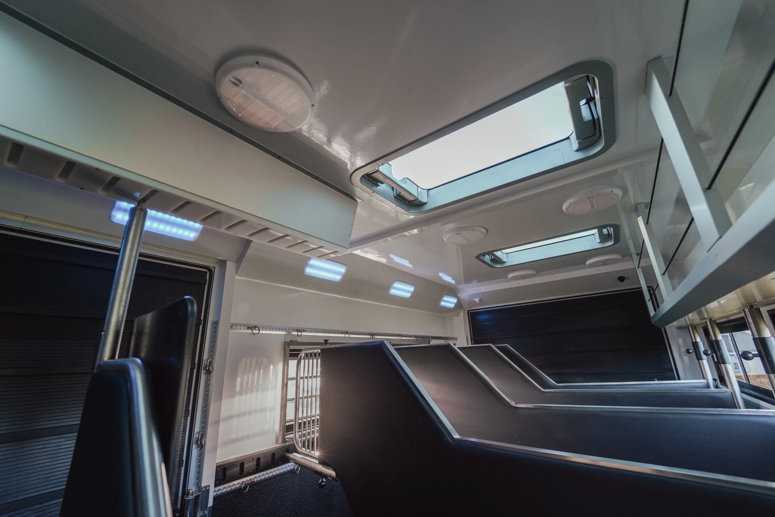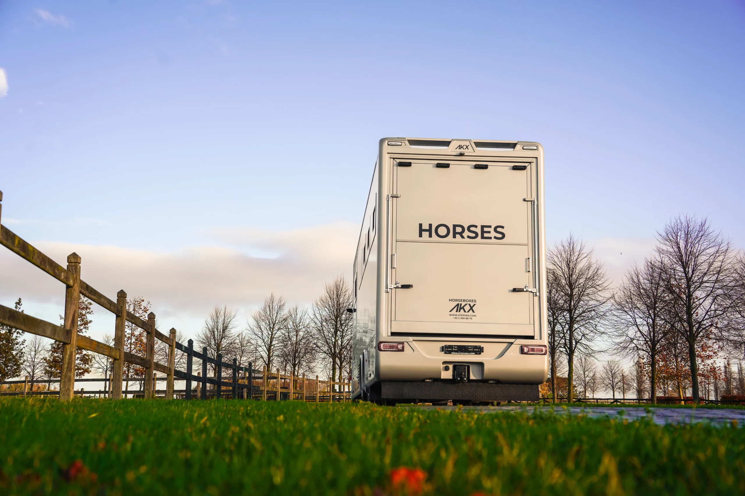 De vrachtwagen kan tot 6 paarden vervoeren.